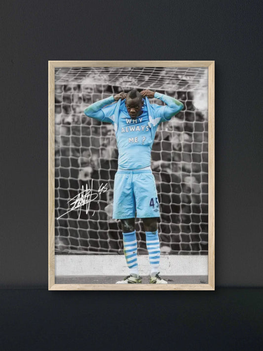 Balotelli Why Always Me Celebration Poster — Soccer Wall Art Print